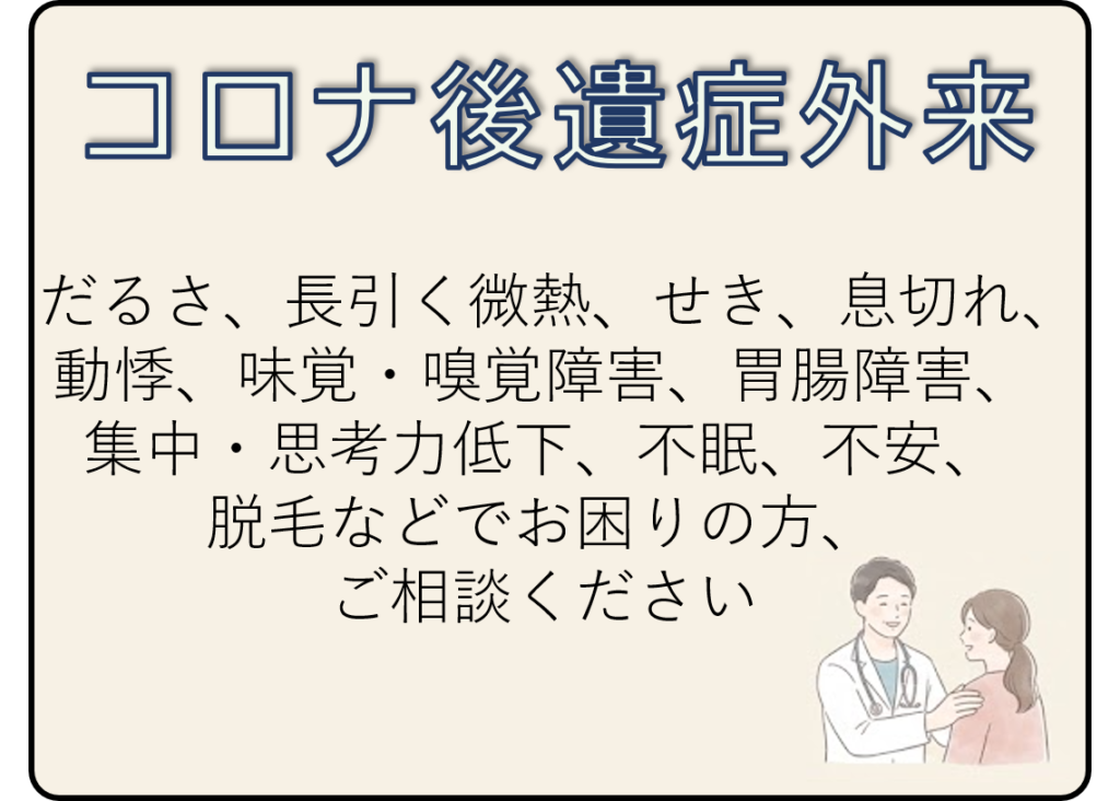 当院では、内科を基本としつつ、患者さまのお悩みについて、総合的な診療を行っております。